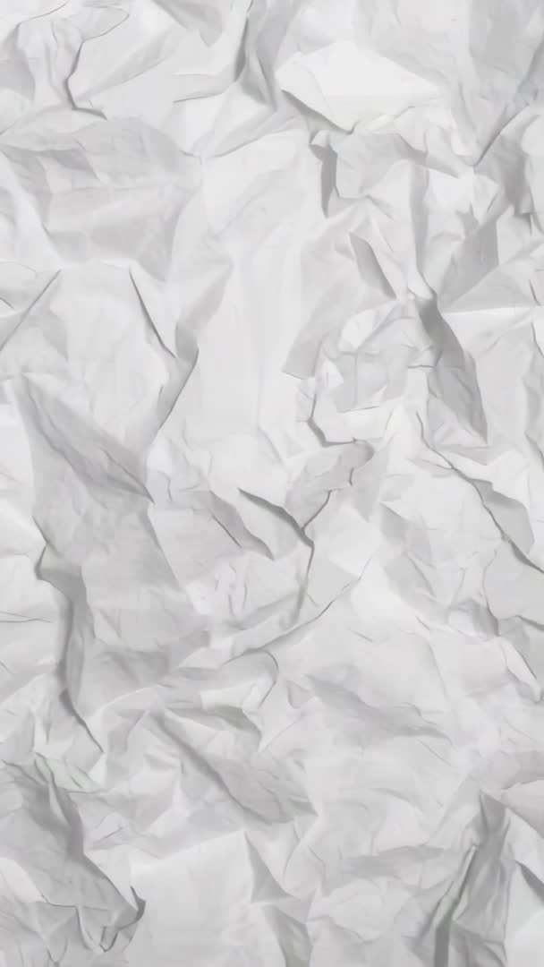 AI Generated Image. Camera shifting over crumpled white paper, revealing folds, creases, and sculpted shadows for tactile monochrome texture. Vertical format optimized for social media stories and mobile-first video projects. Loop-friendly motion suitable for background on Instagram Stories, TikTok, Reels, mobile hero banners, and vertical ads. Texture working well for graphic overlays, title reveals, product mockups, and print materials requiring distressed or handcrafted feel. Easily color grading to match brand palette or applying blend modes for layered compositions. Recommended cropping for safe area when adding text or logos and using subtle motion blur for smooth looping.