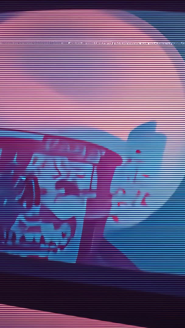 AI Generated Image. Clip showing vertical composition with moon disc centering on screen while cup silhouette remaining left, overlaid with VHS-style scanlines, magenta-blue gradient and digital glitch artifacts. Visual mood combining retro VHS, vaporwave and cyberpunk tones, creating eerie yet nostalgic atmosphere. Colors emphasizing magenta, cyan and deep blue, with high contrast and heavy grain. Useful for social media stories, vertical ads, short music video intros, Halloween promos, retro tech branding and livestream overlays. Design-friendly layout offering ample copy space right for headlines, captions or logo placement. Loop-friendly movement and steady pan making clip suitable for background loop, title slide or transitional scene in short-form video. Delivery-friendly clip for editors seeking retro glitch aesthetic and bold neon color palette.