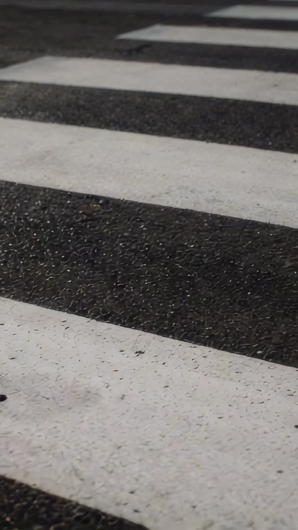 Vertical video shifting over worn painted crosswalk stripes on textured asphalt at night Video