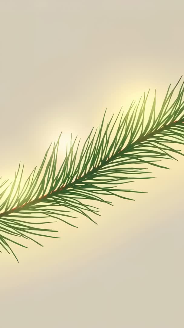 AI Generated Video. Video showing drifting camera nudging pine branch, backlit needles casting halo light on soft beige background. Camera movement creating gentle swaying motion and subtle bokeh highlights, offering calm minimal composition for vertical formats. Providing ample negative space in upper left for overlaying text, logo or subtitles. Suiting holiday greeting videos, seasonal social media reels, mindfulness and relaxation apps, product overlays for natural and eco brands, website hero videos and mobile wallpapers. Looping smoothly for ambient backgrounds in retail displays, waiting rooms or meditation content. Color palette allowing easy color grading and branding.