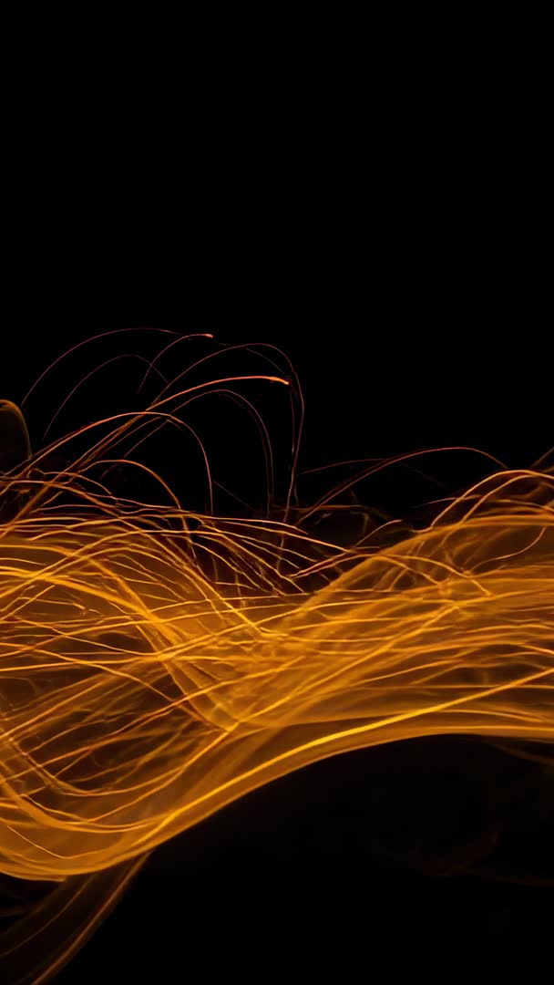Vertical video showing golden light ribbons flowing and dancing across black canvas Video