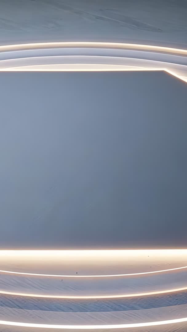 AI Generated Video. Vertical video showing LED strips activating across gray wall, creating layered bands of warm light and soft shadows. Clean minimalist composition presenting sleek curved lines and ample negative space. Suiting background use in tech presentations, product launches, app demos, social media reels, smartphone wallpapers. Working well as intro or outro for corporate videos, architectural showcases, interior design portfolios, ambient music videos, mood-setting B-roll. Color palette matching monochrome branding and modern UI overlays. Footage looping smoothly for continuous ambient motion. Suggested edits: adding subtle lens flare, overlaying text, color grading to match brand. Licensing covering commercial apps, broadcast, online advertising.