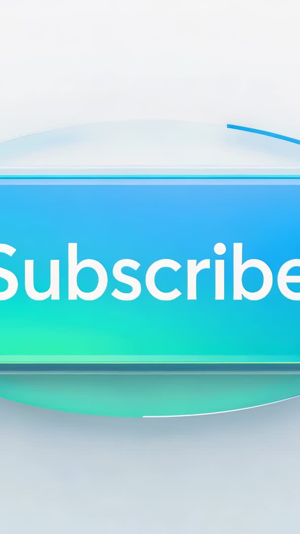 AI Generated Video. Showing vertical UI animation with pulsing teal Subscribe button, glossy gradient and rounded edges drawing attention and inviting taps. Working perfectly for app onboarding, subscription prompts, social vertical ads, YouTube Shorts end screens, or in-app overlays. Allowing easy customization of color, text, and size for brand matching; pairing with subtle click sound or haptic feedback for increased engagement. Exporting as looped MP4, GIF, or Lottie for web and mobile integration; recommending 1080x1920 resolution and high frame rate for smooth pulse. Using inside UI kits, marketing templates, onboarding flows, or livestream graphics to increase subscription conversions and user interaction. Fitting modern, minimal, glassmorphism, or flat design projects targeting creators, SaaS, media apps, and ecommerce subscriptions. Suggesting placement near content end, adding progress indicator, or combining with discount badge for stronger CTA testing.
