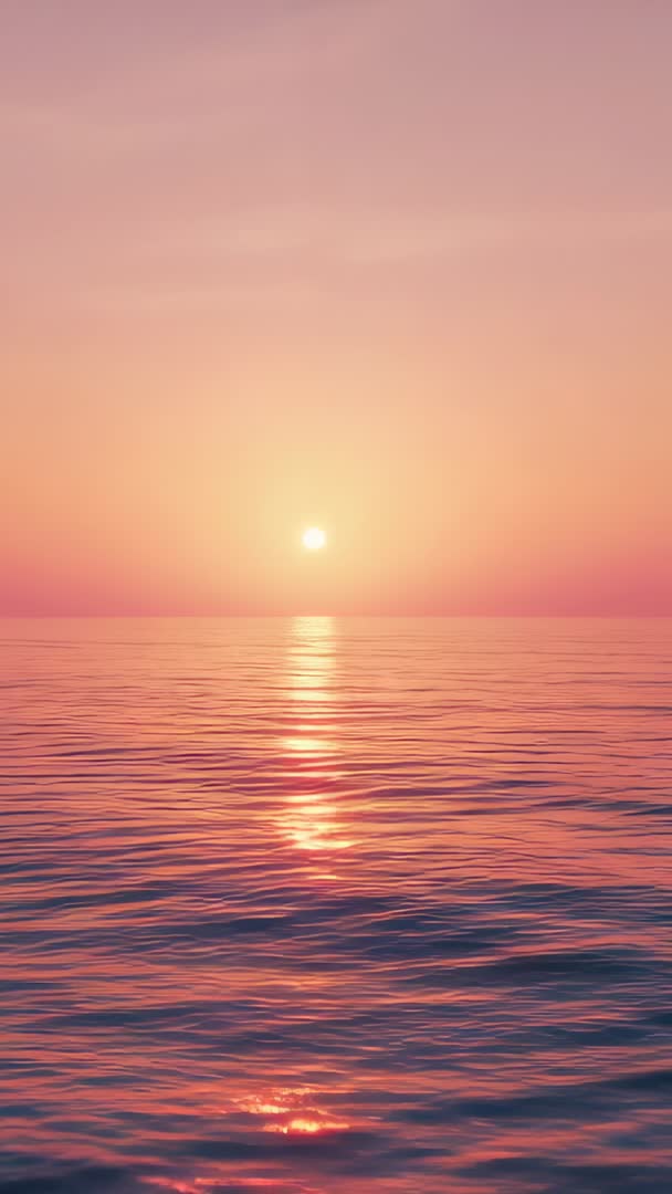 AI Generated Image. Showing rising sun above calm ocean and casting long golden reflection across gentle water surface. Featuring warm pastel palette of pink and gold tones, creating peaceful and hopeful mood ideal for wellness and meditation projects. Framing vertical composition for mobile-first content, social media stories, and short-form video ads. Providing clean negative space for text overlays, logos, and inspirational quotes. Working great as loopable background for relaxation playlists, guided meditation videos, or cinematic opening shot for travel and hospitality promos. Offering 9:16 vertical aspect suitable for smartphone screens and reels, with subtle wave motion adding natural visual interest.