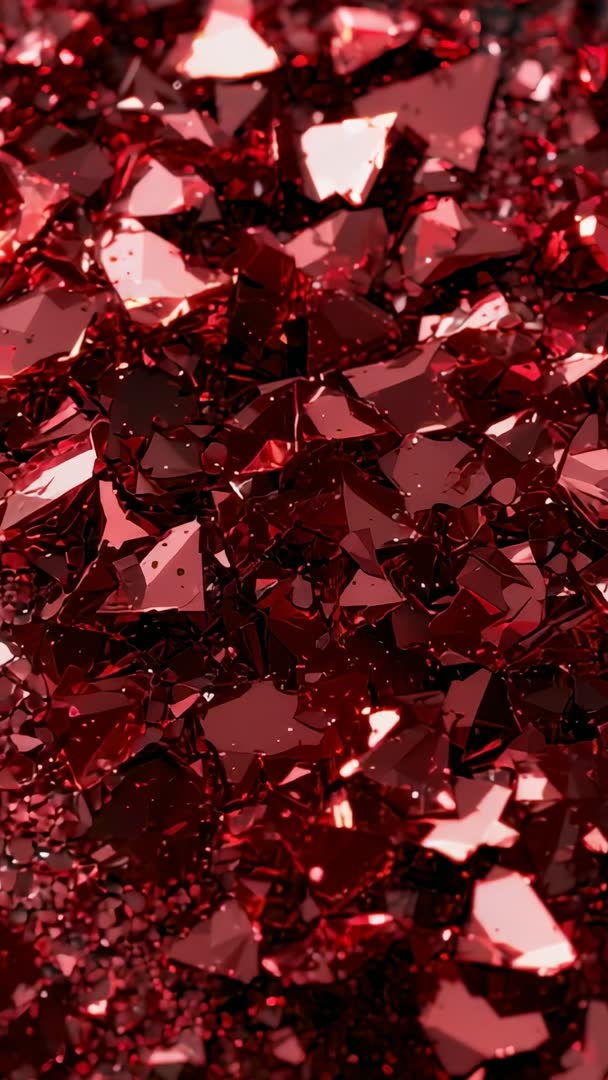 - Vertical video showing shifting light on red faceted shards creating dramatic glittering macro loop