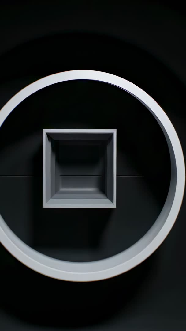 AI Generated Image. Showing studio light sweeping across white circular ring and recessed stepped square niche on matte black wall. Centering geometric forms and creating strong contrast with deep shadows. Highlighting clean lines and layered depth, producing minimalist modern atmosphere. Suiting architecture reels, modern art showcases, design portfolios, background for title cards, social media vertical ads, gallery exhibition previews. Recommending bold sans serif text overlays and high contrast monochrome color grading. Allowing tight crop for mobile hero banners and vertical format promos.