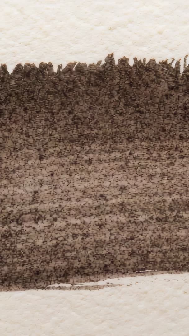 - Vertical video showing watercolor swatch with heavy brown granulation and ragged edge