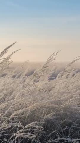 AI Generated Video. Vertical video capturing swaying tall grasses bending and drifting across misty horizon at sunrise. Golden light bathing seedheads and dew, breeze producing gentle rhythmic motion. Soft pastel sky creating peaceful, cinematic mood. Shallow depth providing layered foreground of textured grass blades. Useful for background loops, calming nature b-roll, social media stories, meditation and wellness content, travel and tourism promos, seasonal campaign visuals. Ideal for overlaying text, slow-motion edits, ambient music beds, mindfulness app backgrounds, website hero banners, vertical ad spots. Color grading friendly for warm or desaturated looks, cinematic cropping for portrait-first platforms. Licensing ready for editorial and commercial use, suitable for branded campaigns, blogs, and stock libraries.