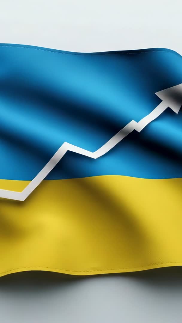 - Vertical video with rising white arrow on waving Ukrainian flag symbolizing economic growth