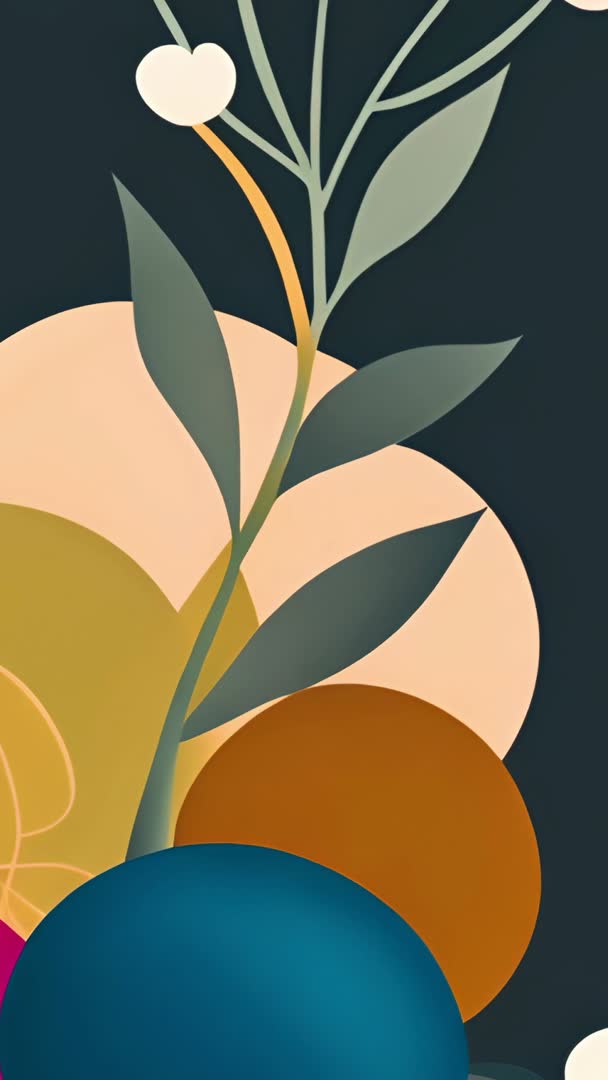 - Vertical video with teal semicircle sweeping over geometric botanical composition