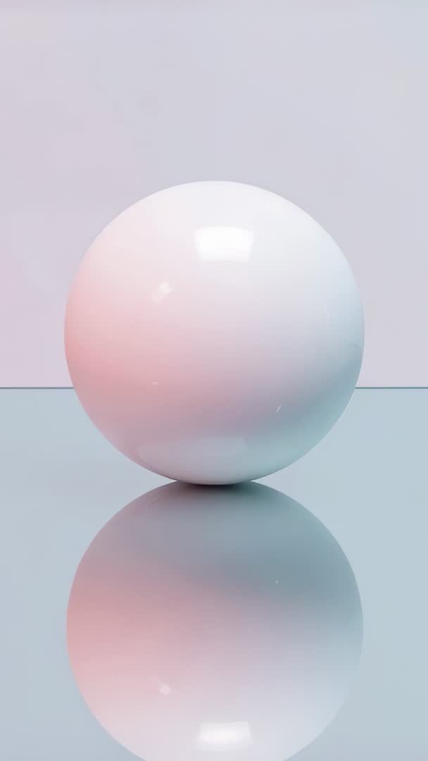 AI Generated Image. Vertical 9:16 video showing slow smooth zoom toward glossy white sphere sitting on reflective floor. Pastel red and cyan lighting creating soft gradient highlights across sphere and mirror surface. Minimal composition emphasizing form, symmetry, reflection, and negative space. Suitable for mobile backgrounds, social media vertical ads, UI intros, product showcase overlays, meditation visuals. Clip working well as loopable ambient backdrop, cinematic transition, or modern title sequence element. Combine with bold typography overlays, parallax effects, or gentle soundtrack to enhance mood and branding.