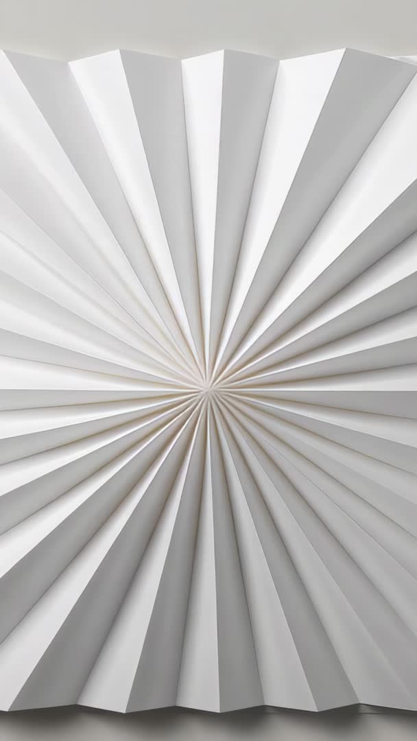 AI Generated Video. Clip showing camera zooming into paper rosette mounted on gray wall, revealing precise radial starburst and scalloped edge. Monochrome palette and perfect symmetry creating calm modern aesthetic for minimalist interiors and branding. Use as mobile-first background for social media stories, Reels, TikTok ads, vertical web banners and app intros. Applying slow inward zoom or parallax reveal enhances motion and depth; looping segment working well for seamless animated backdrop. Overlay minimalist text or logo at center or top with high-contrast sans-serif for promotional or editorial use. Ideal for interior design promos, craft tutorials, product showcase, mood boards, packaging mockups, and website hero sections.
