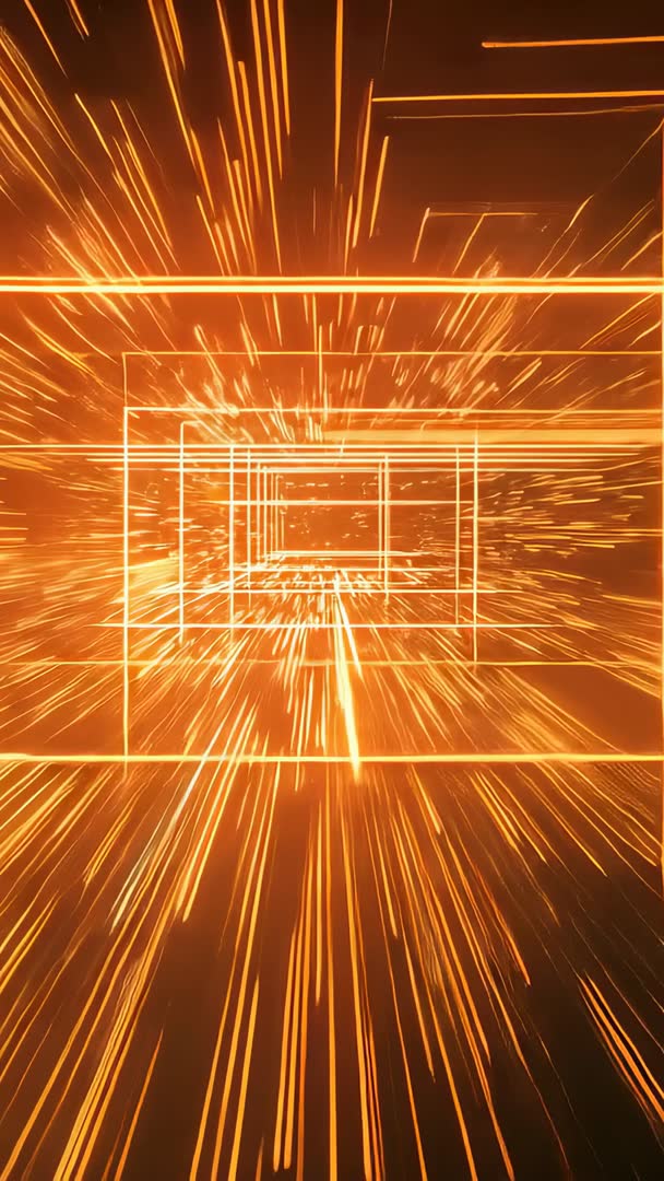 AI Generated Image. Vertical 9:16 looping video presenting wireframe tunnel with accelerating orange light streaks and pulsing neon grid. Offering intense sense of speed and depth for sci-fi, technology, gaming projects. Working well as background for vertical video ads, social media stories, YouTube shorts, app intros, live stream overlays. Pairing easily with electronic music, bold titles, logo reveals, transition effects. Providing seamless loop for stage visuals, LED walls, VR experiences, website hero sections. Delivering high-energy visual for product launches, promotional reels, motion graphics templates. Using 4K vertical, 60fps, looping clip of 5-10 seconds for smooth playback.