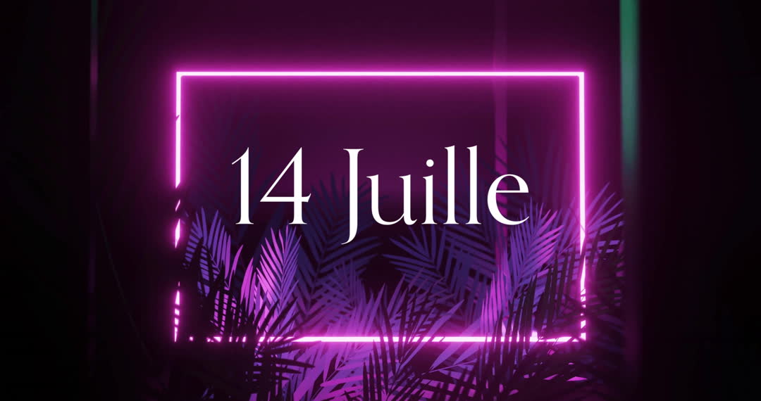 Vibrant 14 Juille Neon Frame With Tropical Palm Leaves Video