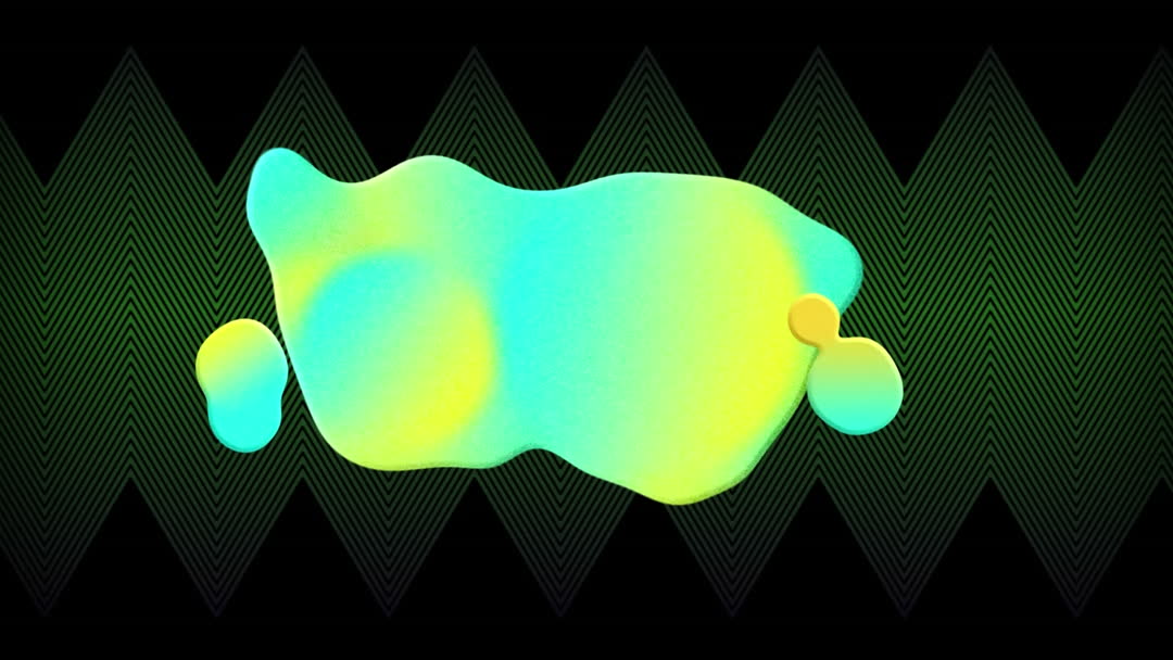 A colorful abstract animation featuring a flowing yellow and green form against a dark, geometric background. Ideal for use in creative projects related to modern art, digital design, pattern studies, or as a vibrant visual in animations and motion graphics. Adds a touch of dynamic movement and contemporary aesthetic to multimedia and graphic design applications.