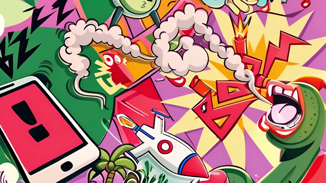 AI Generated Image. Vibrant combination of abstract shapes and modern technological elements like rockets and smartphones symbolizes innovation and futurism. Ideal for technology-related content, digital presentations, or creative marketing that emphasizes imaginative design and dynamic movement.