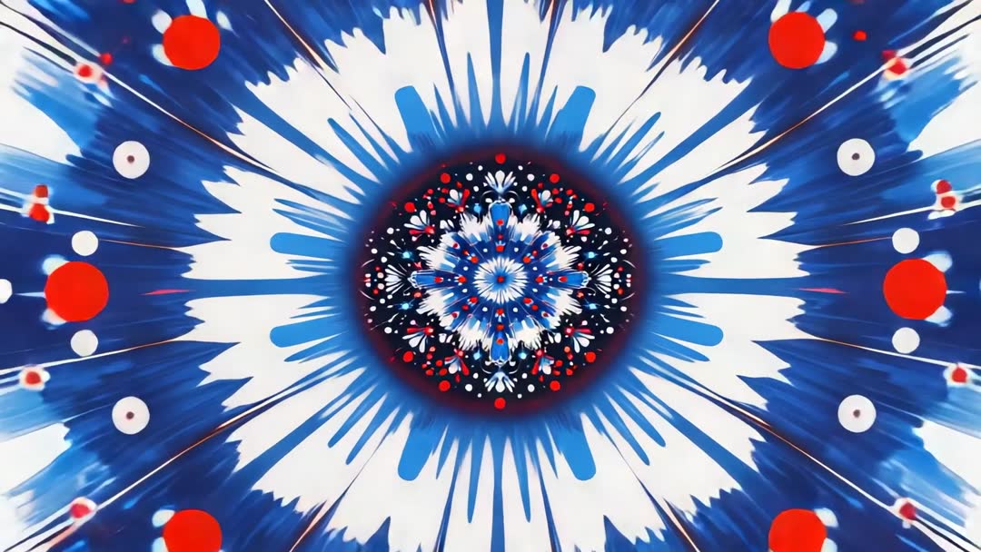 AI Generated Video. This video features a dynamically vibrant and symmetrical mandala illustrating a radial burst. Its bright blue and red tones, paired with the intricate kaleidoscope effect, create a sense of depth and visual stimulation. This digital design is a perfect backdrop for projects involving spirituality, meditation guides, or interior arts decor. Its mesmerizing pattern makes it suitable for use in digital art illustrations, website designs focusing on symmetry and balance, or promotional materials for creative classes and events.