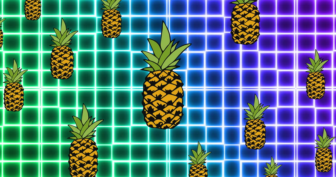 - Vibrant Animated Pineapples on Retro Neon Grid Background