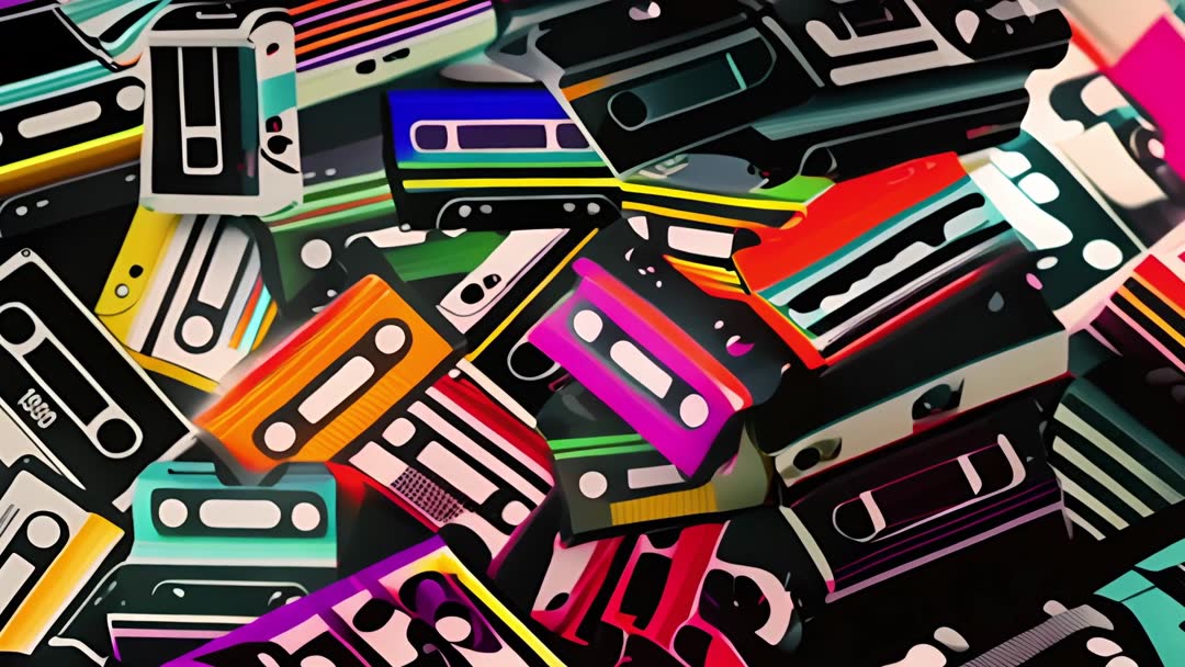 - Vibrant Assortment of Vintage Cassette Tapes in Retro Style