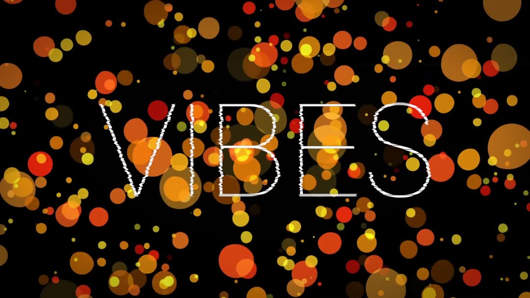 This vibrant digital design features the word 'VIBES' in front of an abstract background made of orange, red, and yellow bokeh circles on a dark base. Ideal for marketing materials, event graphics, digital art projects, and backgrounds for modern advertisements. The energetic and colorful feel makes it suitable for creative industries and contemporary digital media.
