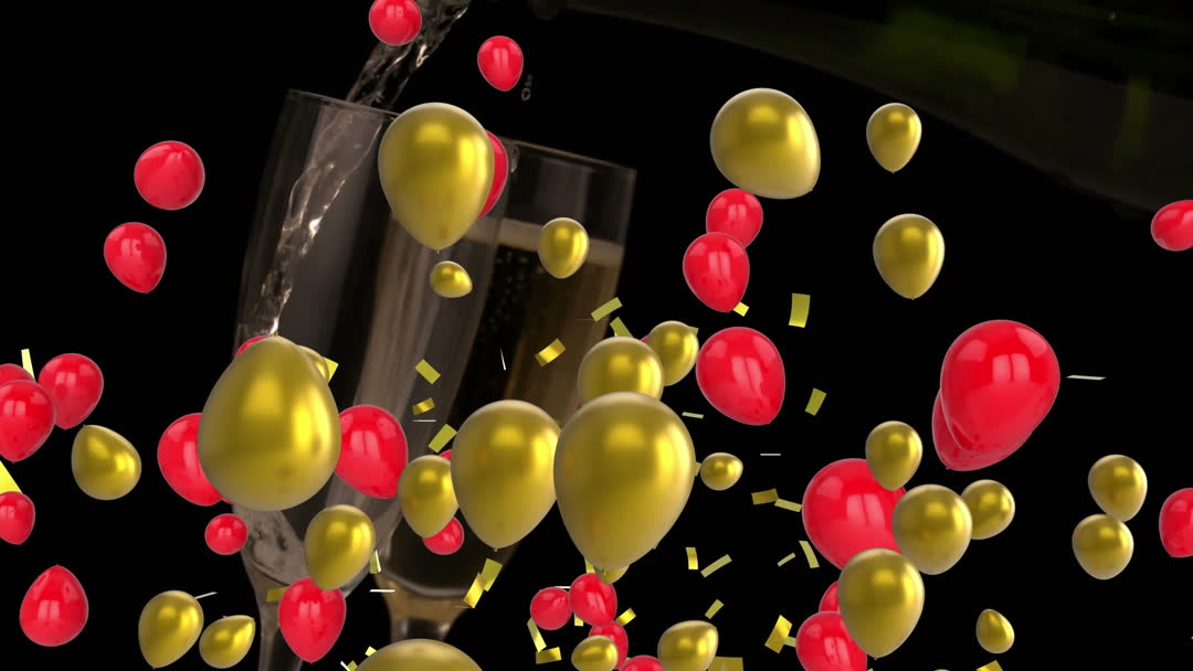Vibrant Celebration Balloons with Champagne Pouring Video