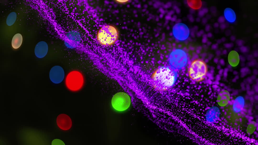 This abstract video showcases a vibrant purple digital wave overlaying colorful bokeh lights, creating a sense of motion and energy. Suitable for tech-related backgrounds, presentations, or visual effects projects. Ideal for themes focused on innovation, digital industries, or futuristic designs.