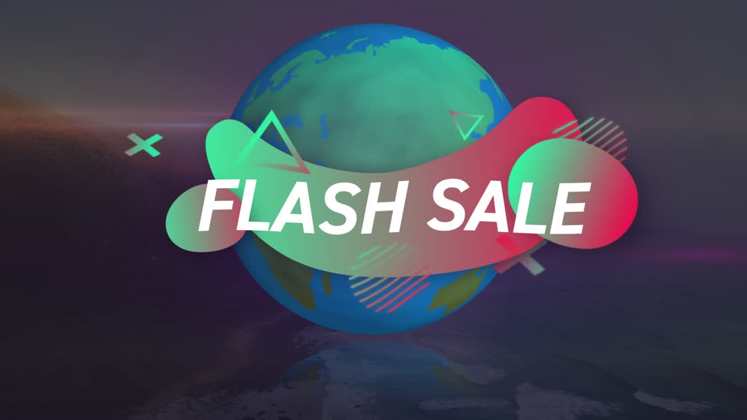 Vibrant Flash Sale Animation Over Geographic Background Video