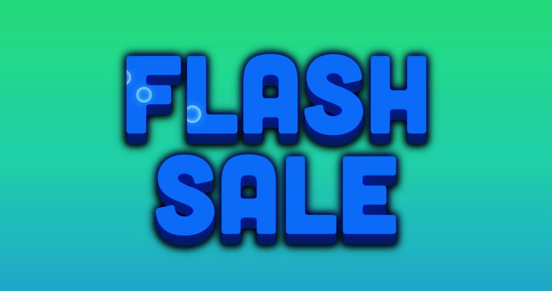 Colorful typography announces a flash sale with bold letters on green and blue gradient. Suitable for online promotions, digital marketing, social media advertisements, and e-commerce visuals highlighting limited-time offers or special discounts.