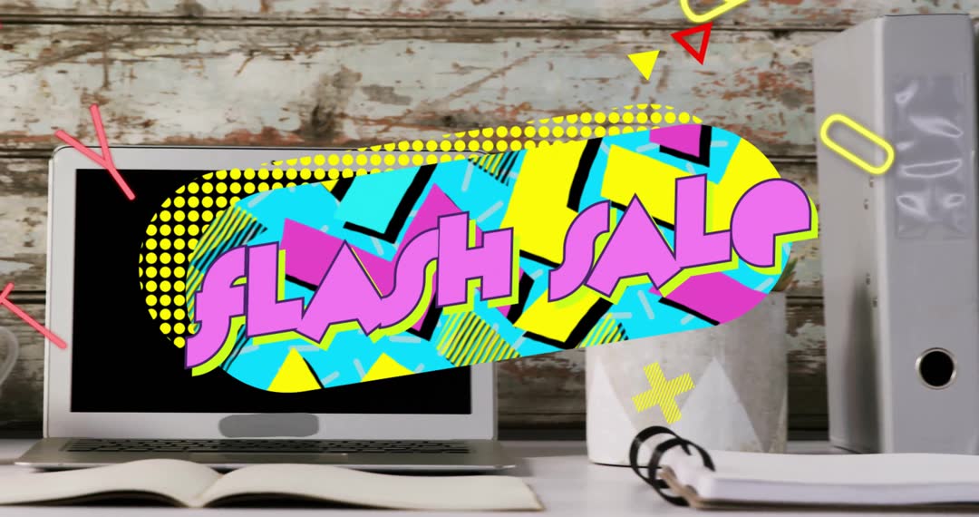 - Vibrant Flash Sale Graphic on Laptop in Creative Workspace