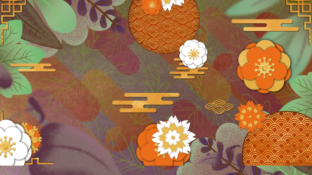 Vivid floral animation showcasing autumnal colors integrated with abstract patterns. Perfect for seasonal decoration and background design needs, highlighting creativity and natural elements with a fresh and festive twist. Versatile for use in holiday greeting cards, seasonal digital designs, or creative theme advertisements.