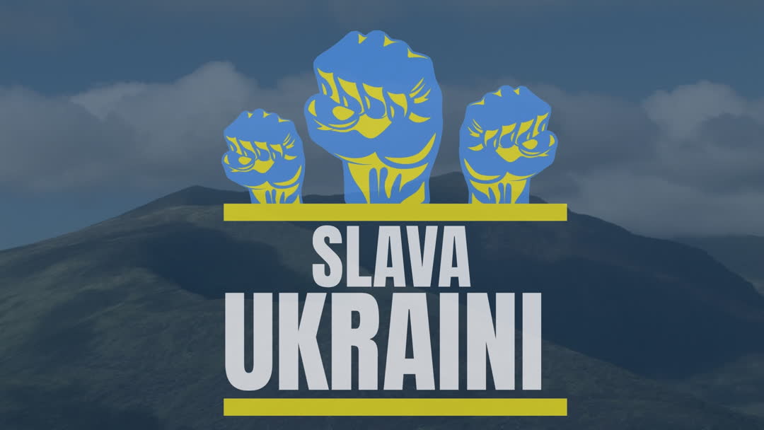 Powerful videory representing national pride and resistance featuring three bold fists in blue and yellow against a mountainous backdrop. Uplifting message 'Slava Ukraini' symbolizes national support and unity. Ideal for expressing solidarity, promoting freedom campaigns, and enhancing content related to cultural pride and resistance movements.