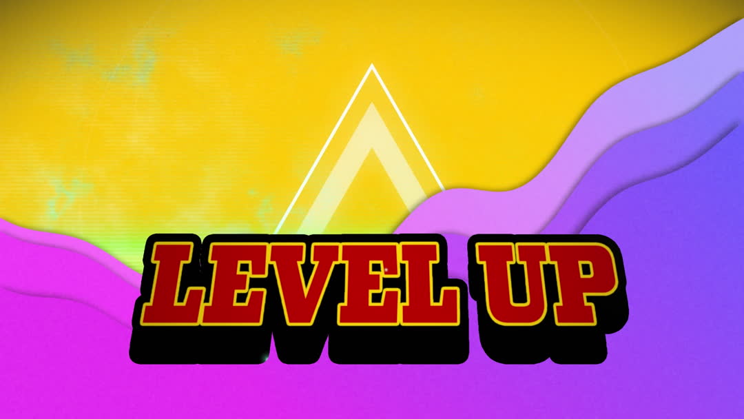The animation features bright colors with the motivational text 'Level Up' superimposed over abstract shapes. Ideal for social media content, digital interfaces, and promotional materials to encourage self-improvement, growth, and motivational themes.