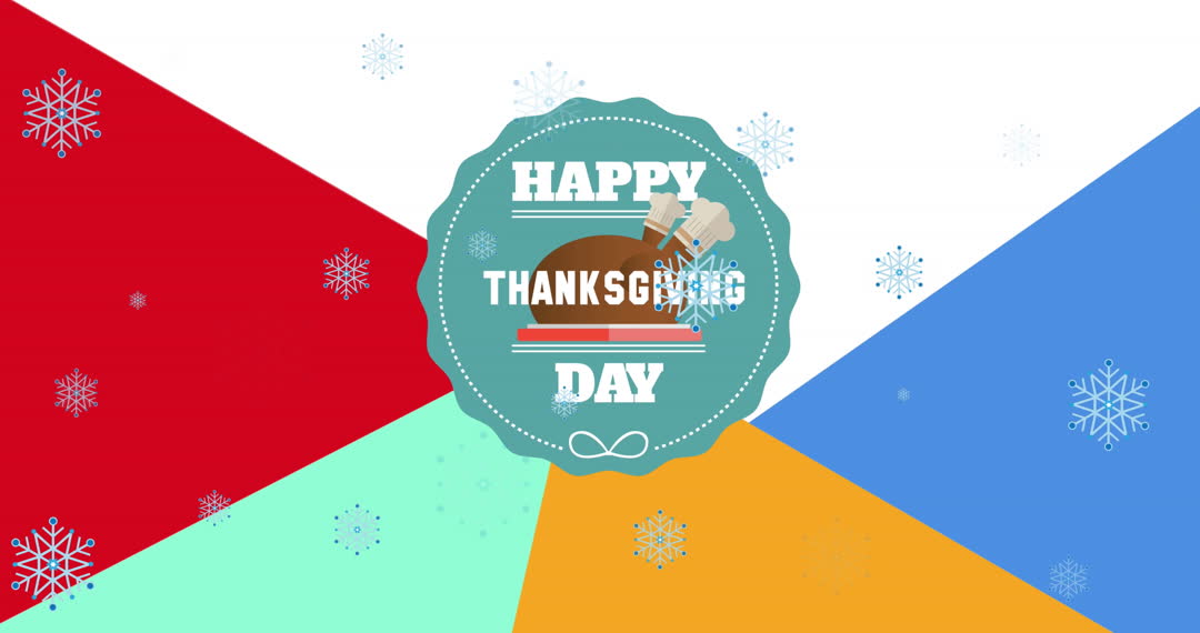 Vibrant Happy Thanksgiving Day Graphic with Snowflakes Video