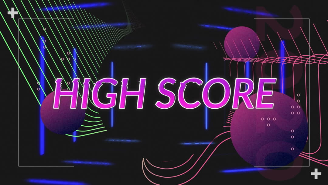 Colorful design with high score text and abstract shapes creates dynamic gaming atmosphere. Use for digital gaming backgrounds, arcade theme promotions, tech events, and creative design projects highlighting retro and futuristic elements.