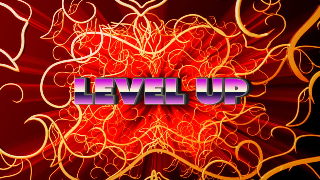 Vibrant Level Up Graphic with Abstract Spiral Design Video