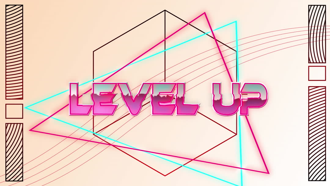 - Vibrant Level Up Neon Graphic on Abstract Geometric Background