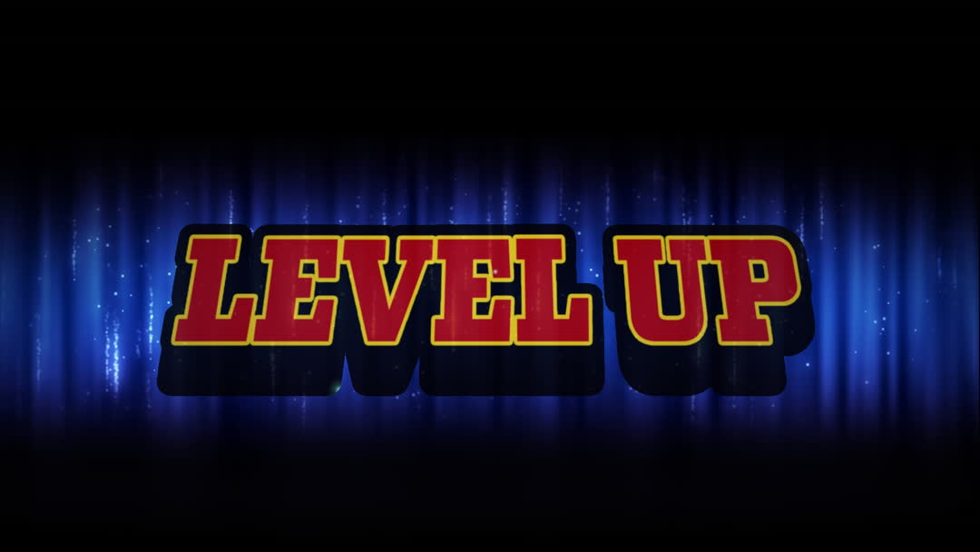 - Vibrant 'Level Up' Video Game Animation on Playful Background