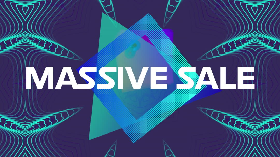 Vibrant Massive Sale Animation with Neon Geometric Pattern Video