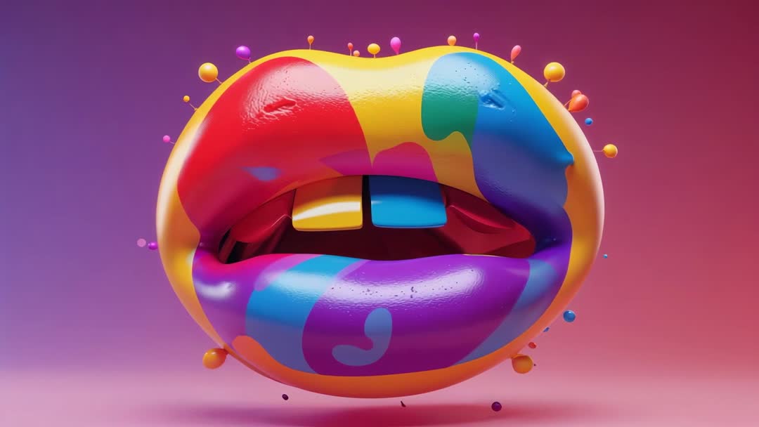 Vibrant Multicolored 3D Lips with Surreal Abstract Design Video
