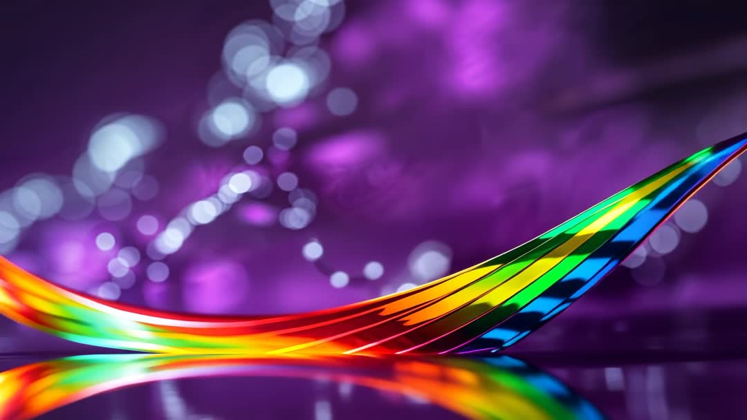 - Vibrant Multicolored Ribbon on Reflective Surface with Purple Bokeh