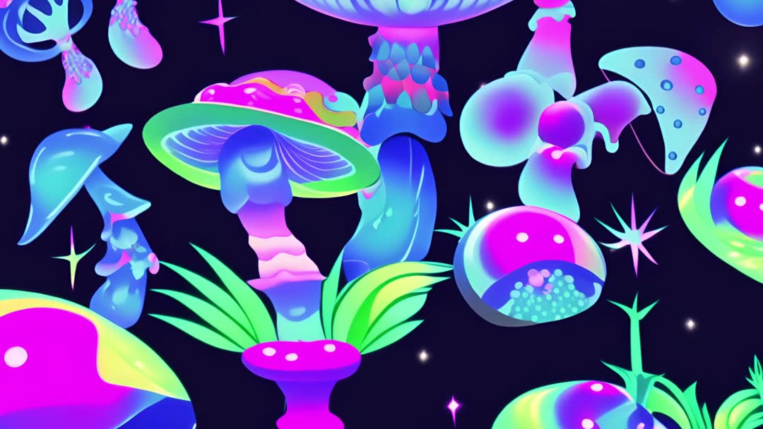 Vibrant Neon Glow Psychedelic Mushroom Fantasy Video