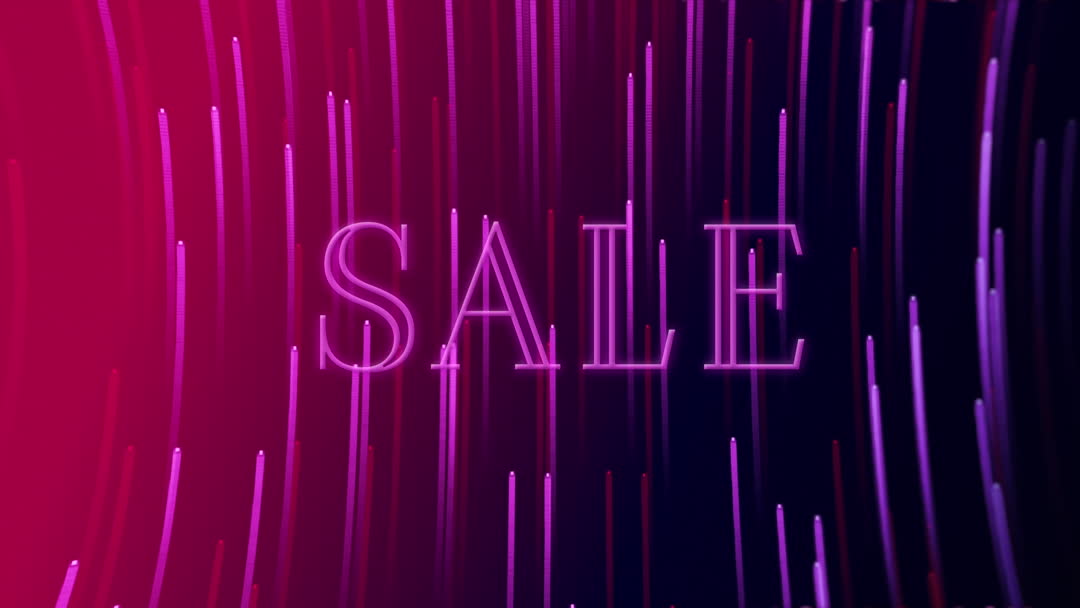 This video features a dynamic presentation with the word 'SALE' in bright neon lights surrounded by vibrant light streaks, ideal for use in digital advertisements and online marketing campaigns promoting big sales and discounts. It can be effectively used on e-commerce websites, social media platforms, or in visual content strategies aiming to grab attention and portray a sense of urgency or excitement about a sale.