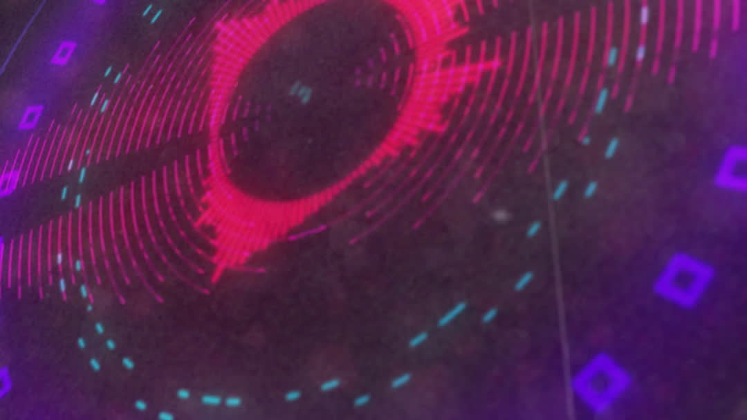 Abstract design featuring vibrant neon patterns spinning against a digital display background. Useful for themes related to parties, technology, or New Year's Eve celebrations. Ideal for festive invitations, event promotions, or video content focusing on digital aesthetics and nightlife.