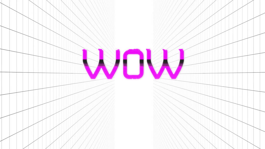 Vibrant Neon 'WOW' Text on Grid Background Video