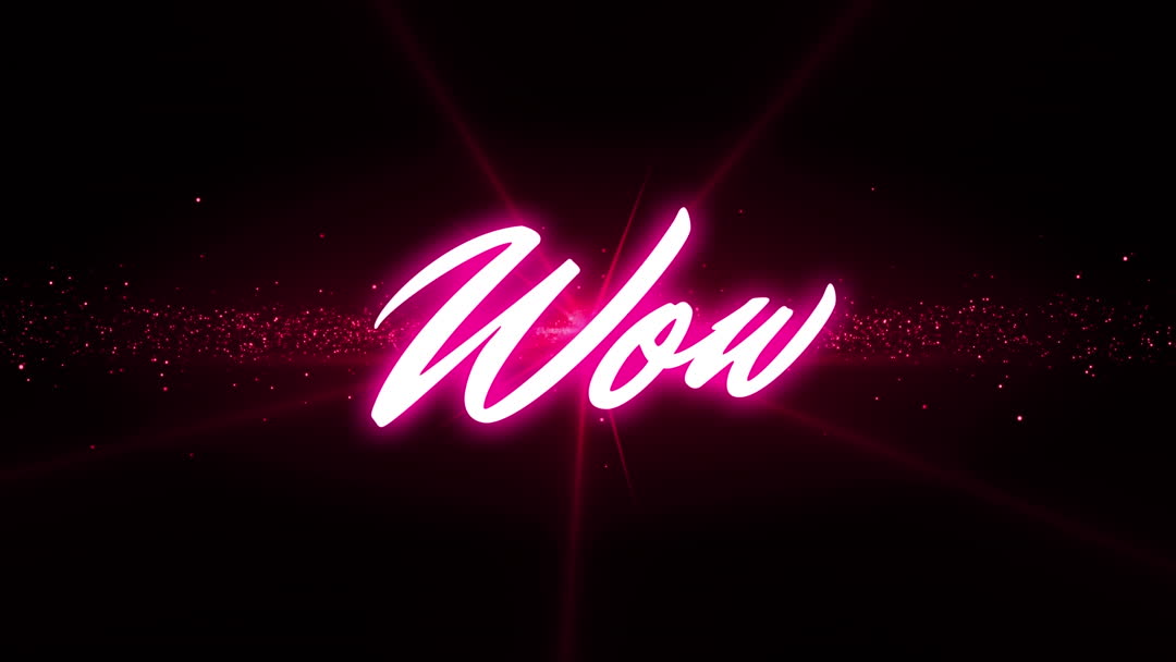 - Vibrant Neon 'Wow' Text with Sparkling Effects