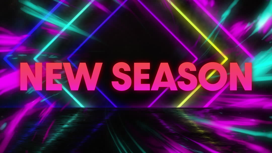 Bright and eye-catching new season typography with neon designs create a contemporary and energetic visual concept. Ideal for use in marketing campaigns, social media graphics, or promotional materials to introduce upcoming events or seasonal changes with a modern flair.