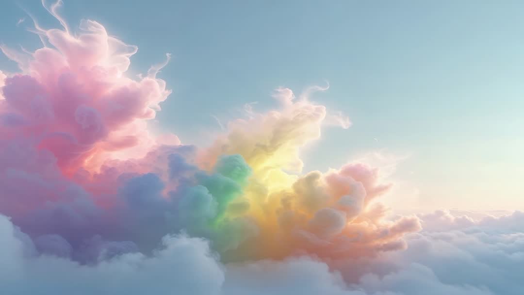 AI Generated Video. A captivating AI-generated scene of vibrant pastel clouds billowing in a serene skyscape during sunrise, offering soothing and dreamlike aesthetics. Suitable for use in digital artwork, relaxation app backgrounds, inspirational content, and nature-themed projects.