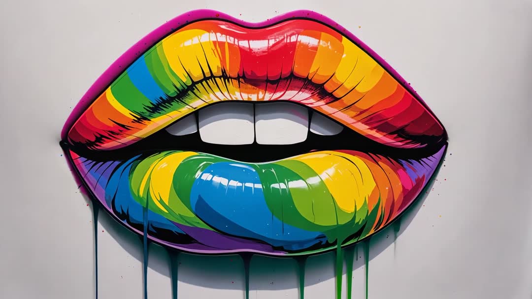 Vibrant Rainbow Lips Graffiti with Magenta Outline Video