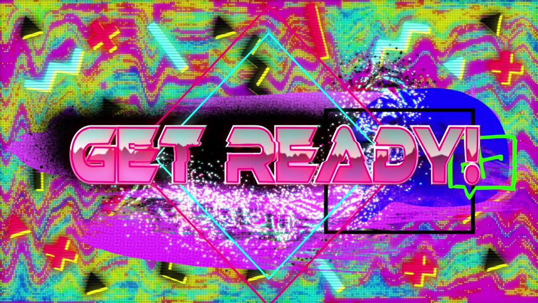 This eye-catching vibrant design features energetic 'Get Ready!' text overlaying a host of colorful and dynamic digital effects emblematic of 1980s aesthetics. Ideal for use in professional graphic design projects, social media promotions, tech-themed presentations or events looking to capture vintage and nostalgia appreciation. The artwork blends geometric and glitch elements to dramatize the feeling of motion and excitement. A versatile piece for engaging various audiences with bold color and energy.