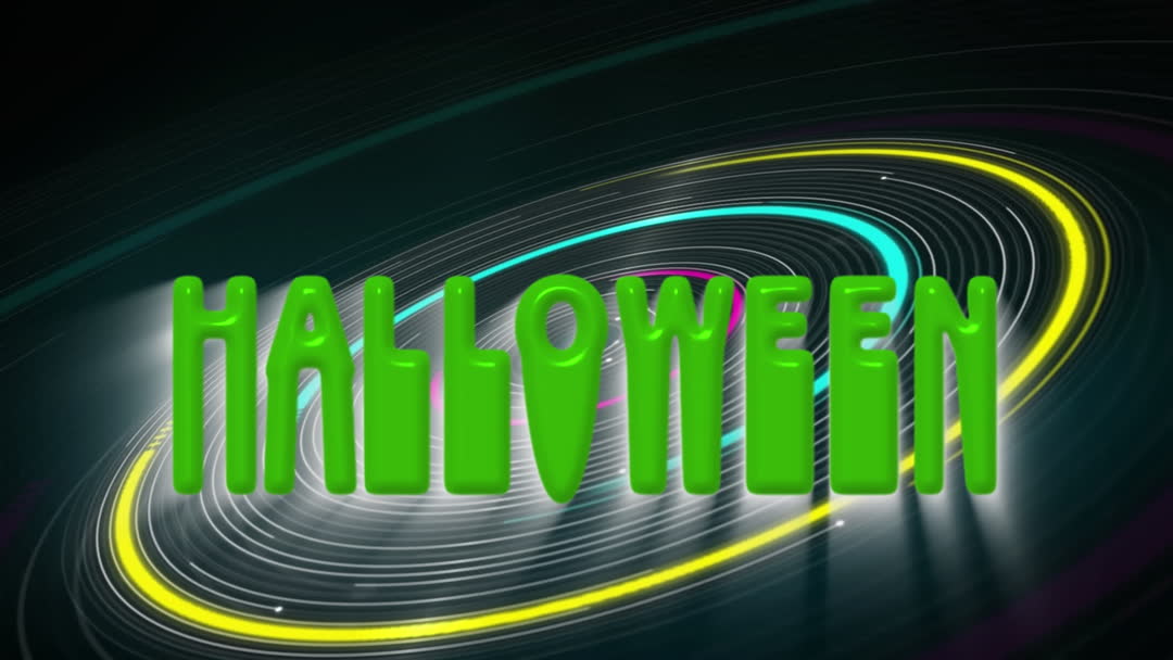 Text glowing amidst circular neon animations provides a vibrant and modern backdrop. Ideal for Halloween party invitations, event promotions, or digital greetings for Halloween celebrations. Eye-catching and contemporary design makes this excellent for multimedia presentations.